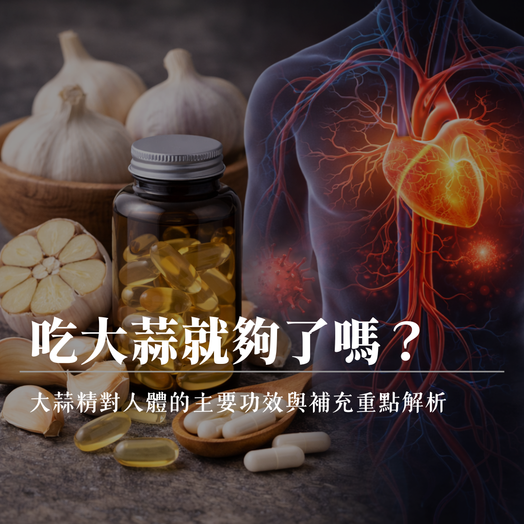 大蒜是日常飲食中常見的食材,許多人也會把它和「保養」聯想在一起。不過,平常料理中吃到的大蒜,和保健品中的大蒜精,其實不是完全相同的概念。大蒜精通常是由大蒜經過萃取、濃縮或特殊製程處理後的補充型態,目的在於提高補充便利性,並盡可能保留或穩定特定活性成分。
