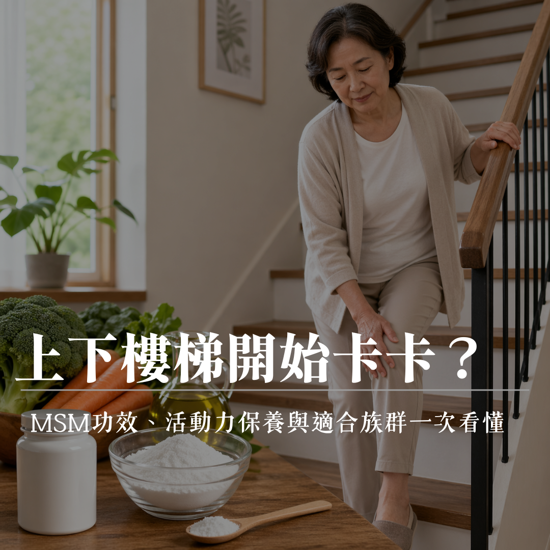 上下樓梯卡卡、久坐後起身不順、運動後恢復變慢,都是提醒我們該重視活動力保養的日常訊號。MSM 作為常見含硫有機化合物,在文獻中多被討論與關節舒適度、活動功能、運動後恢復與氧化壓力調節有關。