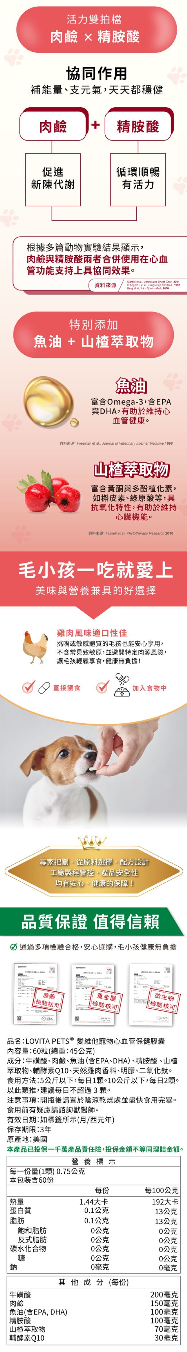 ◎多重保護:魚油Omega-3、山楂萃取物、肉鹼、精胺酸。