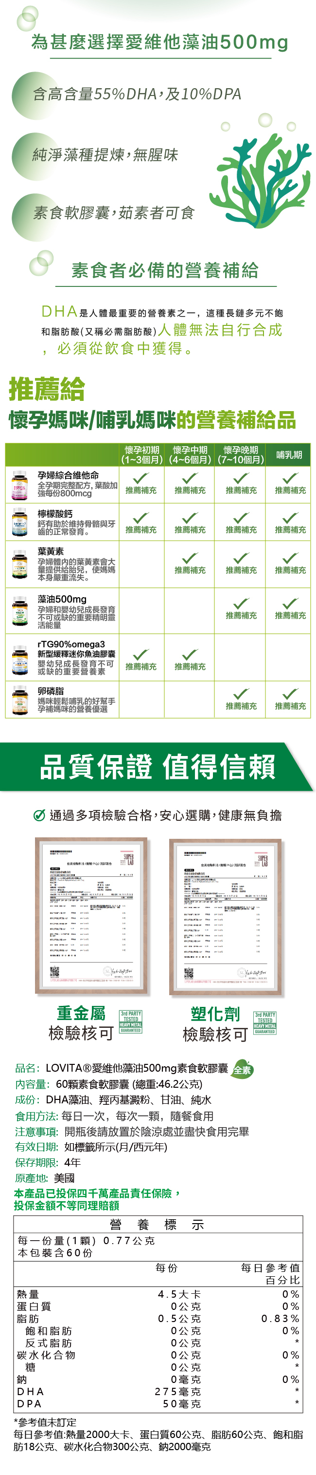 ◎ 高規格藻油,每顆含500mg